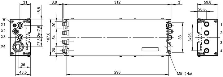 接口X3 | Service interface, RS232: Panel connector 4 pole, A-coded |